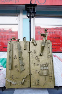 2005 году в Омске на улице Ленина, у входа в магазин «Центр-книга”появился памятник книге. В одних печатных изданиях его называют скульптурой «Книге», в других — композицией «Книга – источник знаний». Это раскрытая книга, страницы которой скреплены цепями, на открытом развороте расположены буквы и сказочные персонажи. Выполнена скульптура методом электродувной сварки и весит около 200 килограммов. Скульптура не выделяется из общей массы разноцветной рекламы, ее замечаешь только когда подходишь совсем близко. Над книгой висит фонарь, который освещает фолиант в темное время суток. Автор скульптуры — А.Н. Капралов, работы которого украшают и другие улицы города. Он родился и сейчас живет в родном рабочем поселке Москаленки Омской области, где сам построил дом, создал литейную мастерскую, кузнецу, в которой и преображает свой любимый материал – металл в идеи и образы.
